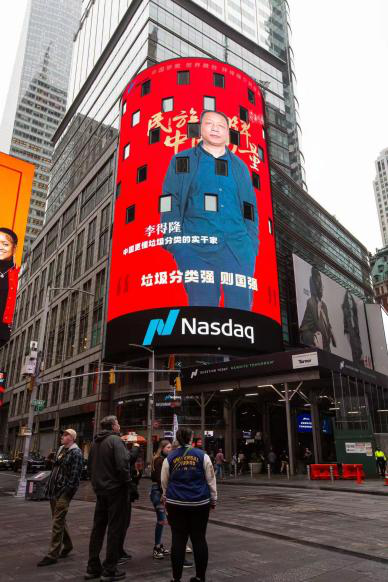 中国更懂垃圾分类的实干家李得隆荣登美国纳斯达克大屏
