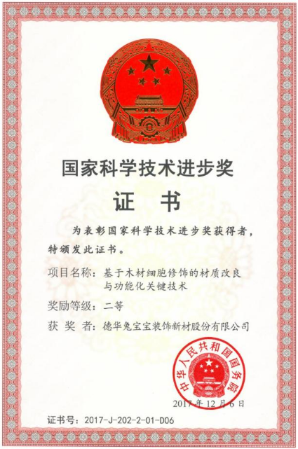 兔宝宝用技术提升产品,荣获国家科学技术进步奖!