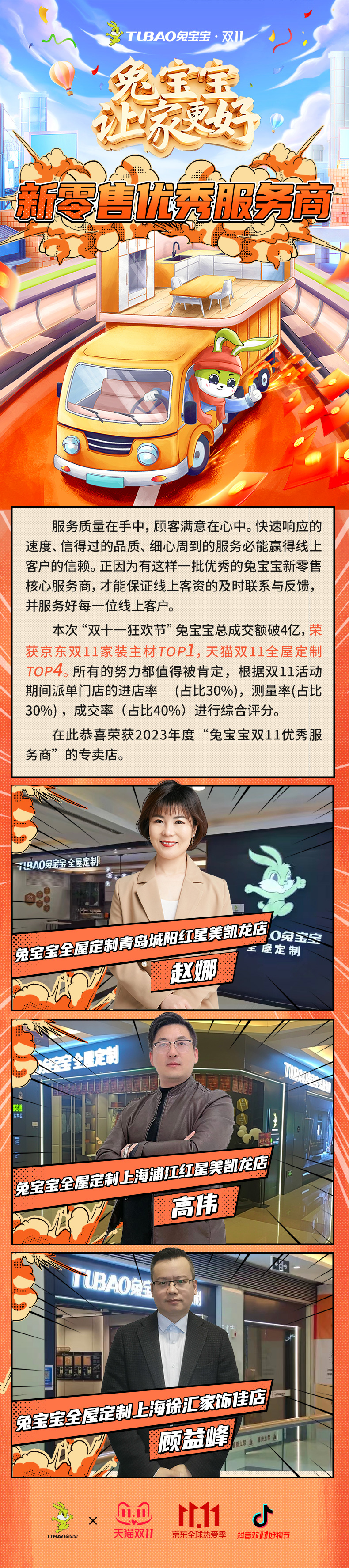 2023年度“兔宝宝双11优秀服务商”嘉奖来袭!