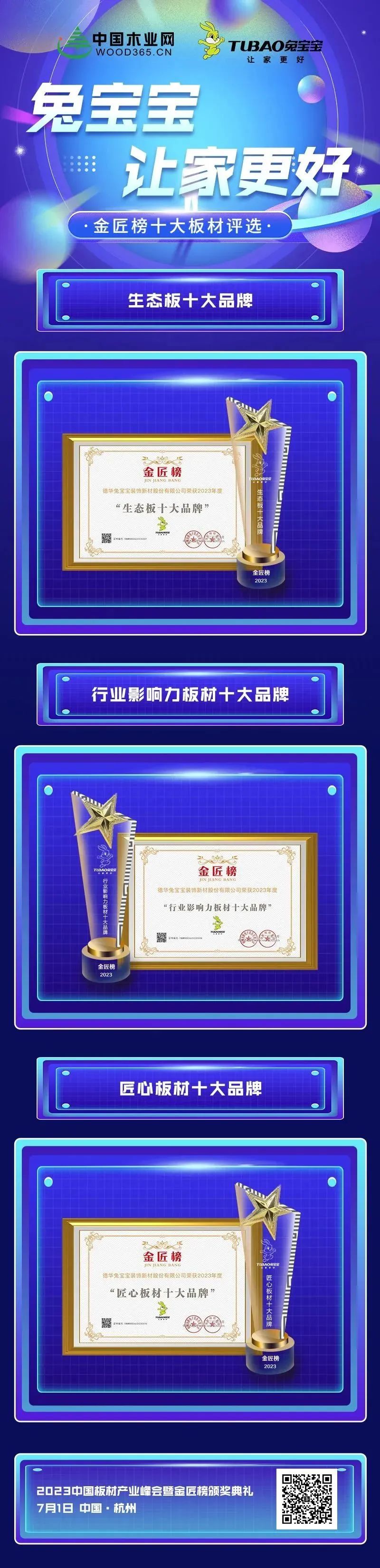金匠榜榜单出炉,兔宝宝揽获三项实力大奖!