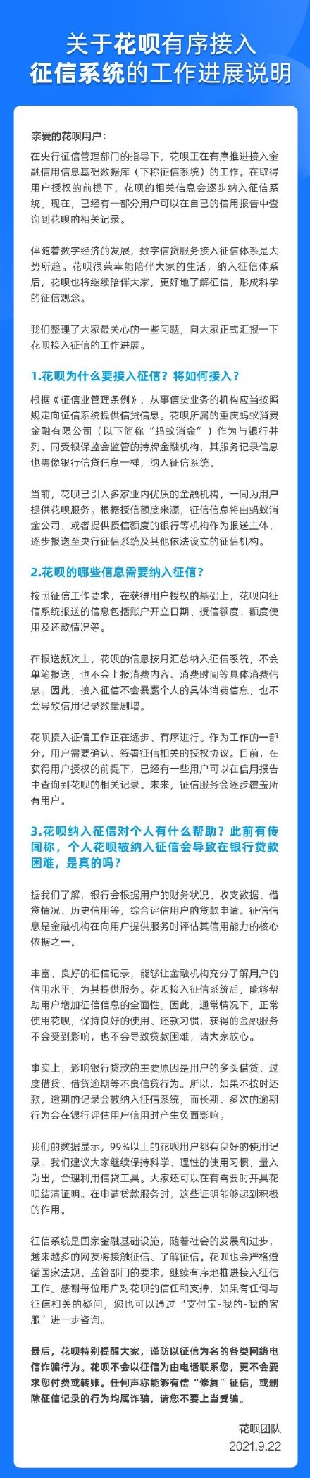 花呗将全面接入央行征信系统