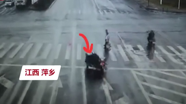 近日,江西萍乡,两位老人闯红灯过马路,正常直行的摩托车紧急刹车避让时摔倒。监控显示,两位老人停留几秒后离开。路人帮忙拨打120后,驾驶人经抢