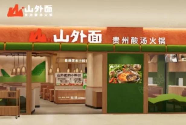 山外面·贵州酸汤火锅,是九毛九集团2024年的全新品牌,主打一锅来自贵州山里的好酸汤,来自大山里,走到山外面,以“山里来的酸”作为品牌标语,